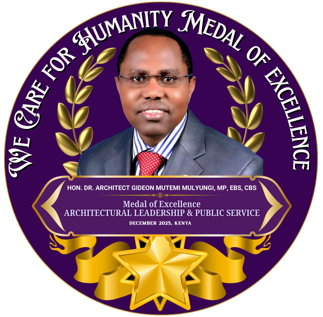 In a magnificent display of international diplomacy and recognition, We Care for Humanity (WCH) officially conferred the Medal of Excellence for Architectural Leadership & Public Service upon Hon. Dr. Architect Gideon Mutemi Mulyungi, MP, EBS, CBS, of Kenya.