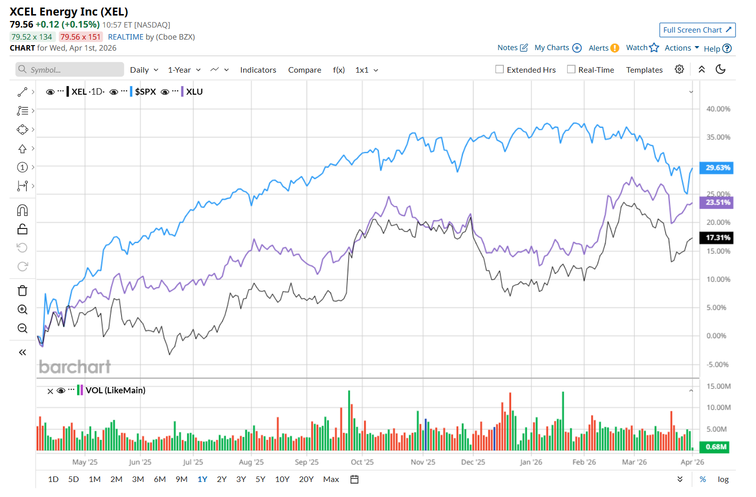 XEL has gained 12.9% over the past 52 weeks, trailing both the S&P 500 Index's ($SPX) 16.4% return and the State Street Utilities Select Sector SPDR ETF’s (XLU) 17% uptick over the same time period.