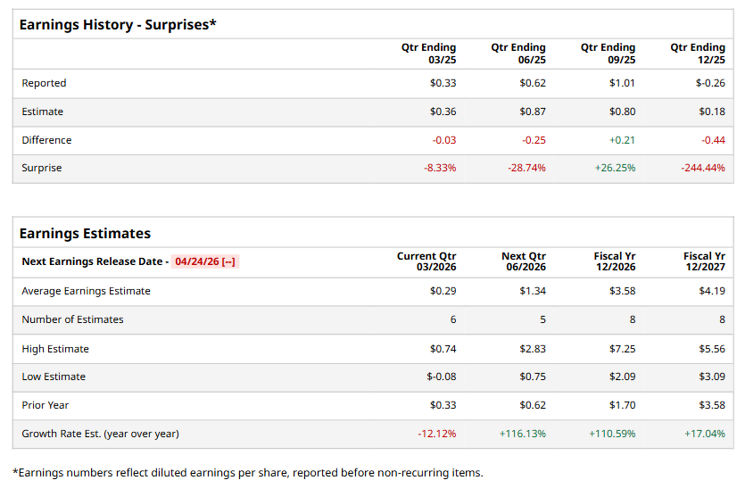 LyondellBasell Industries N.V. (LYB), headquartered in Houston, Texas, operates as a chemical company. Valued at $26 billion by market cap, the company manufactures plastic, chemical, and fuel products. It offers products for the manufacturing of personal care products, fresh food packaging, lightweight plastics, construction materials, automotive, and more. The global leader in developing and supplying materials is expected to announce its fiscal first-quarter earnings for 2026 in the near term.