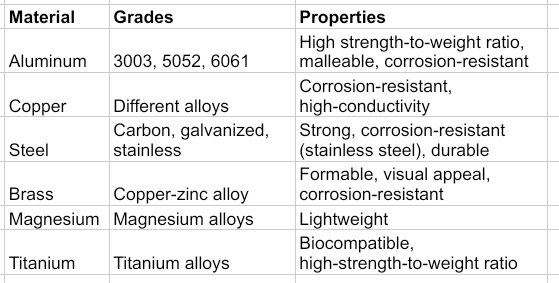 Different metals have different properties, so considering the ideal one for a project is equally critical. Important properties include durability, formability, strength, weight, and versatility.