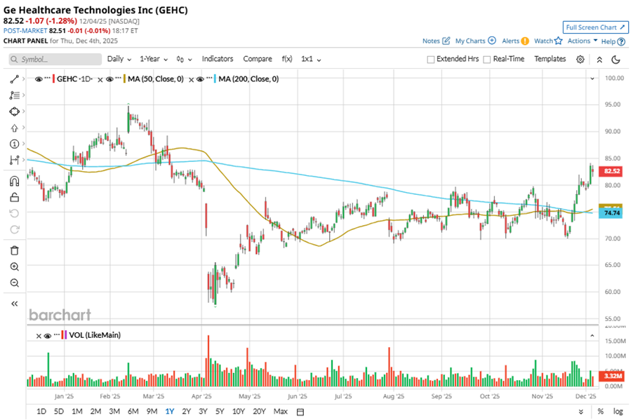 To confirm the bullish trend, GEHC is trading above its 50-day moving average since early June, with some fluctuations. The stock has been trading above its 200-day moving average since late November.