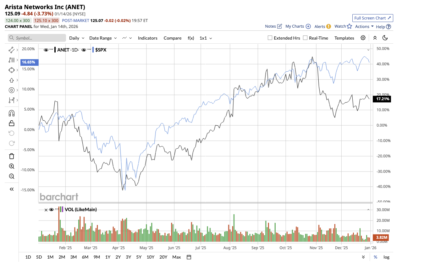 ANET stock has surged 10% over the past 52 weeks, slightly underperforming the broader market. So far this year, the stock is also down 1%. Nonetheless, ANET's average price target of $167.22 implies a potential surge of 29% from current levels. Meanwhiel, the Street-high estimate of $185 implies potential upside of about 42%.